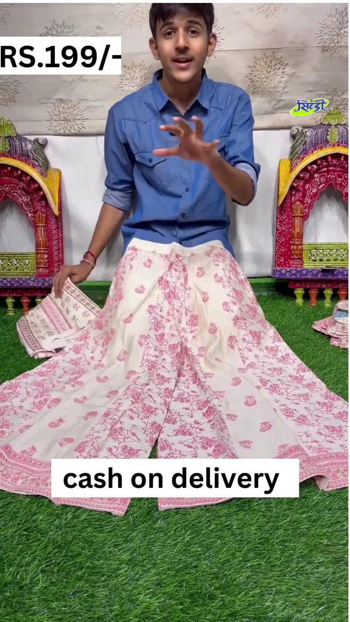 Beautiful Anarkali Style Cotton Kurti with Mirror hand Work with gota lace on Yoke, Sleeves and all over kurti’s border With Pant & dupatta set in new summer shade with beautiful mirror embroidery work with tussels Beautiful full flaired gown.